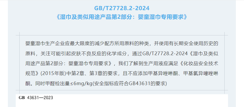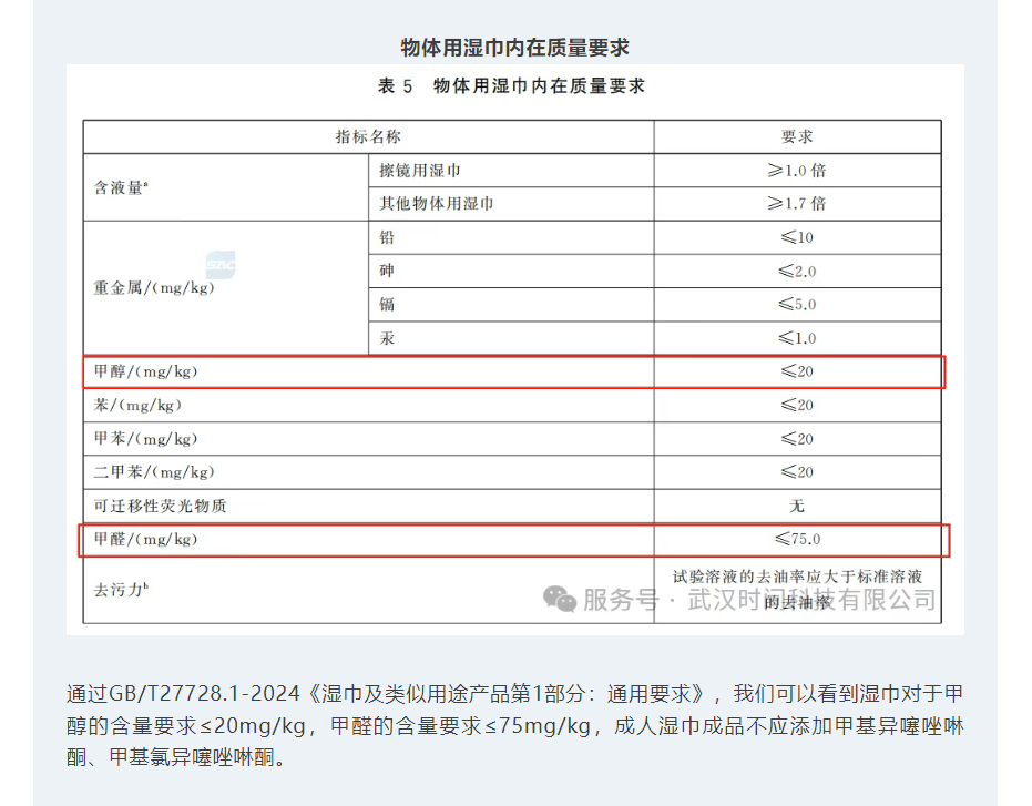 湿巾/湿厕纸用原料风险物质要求