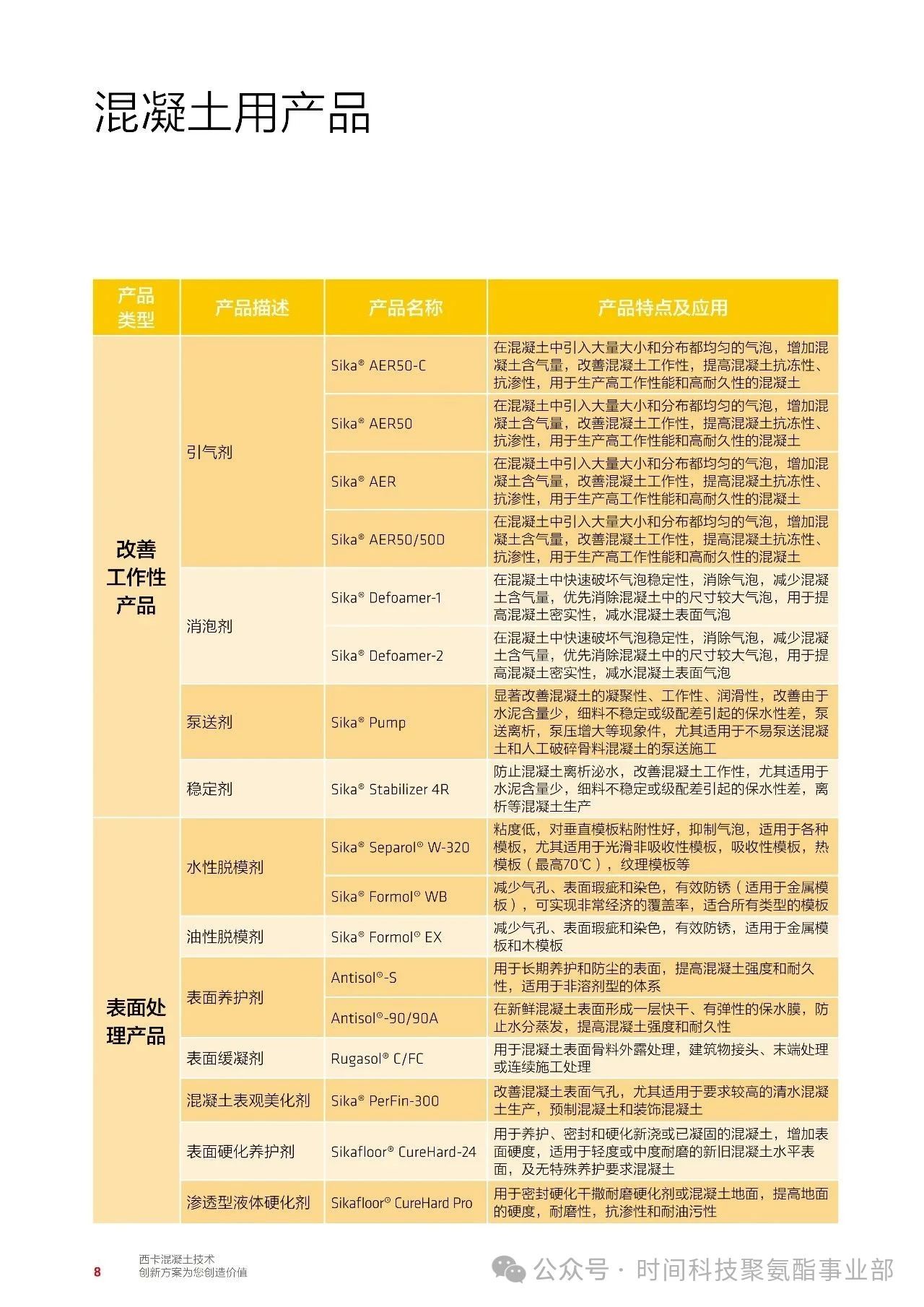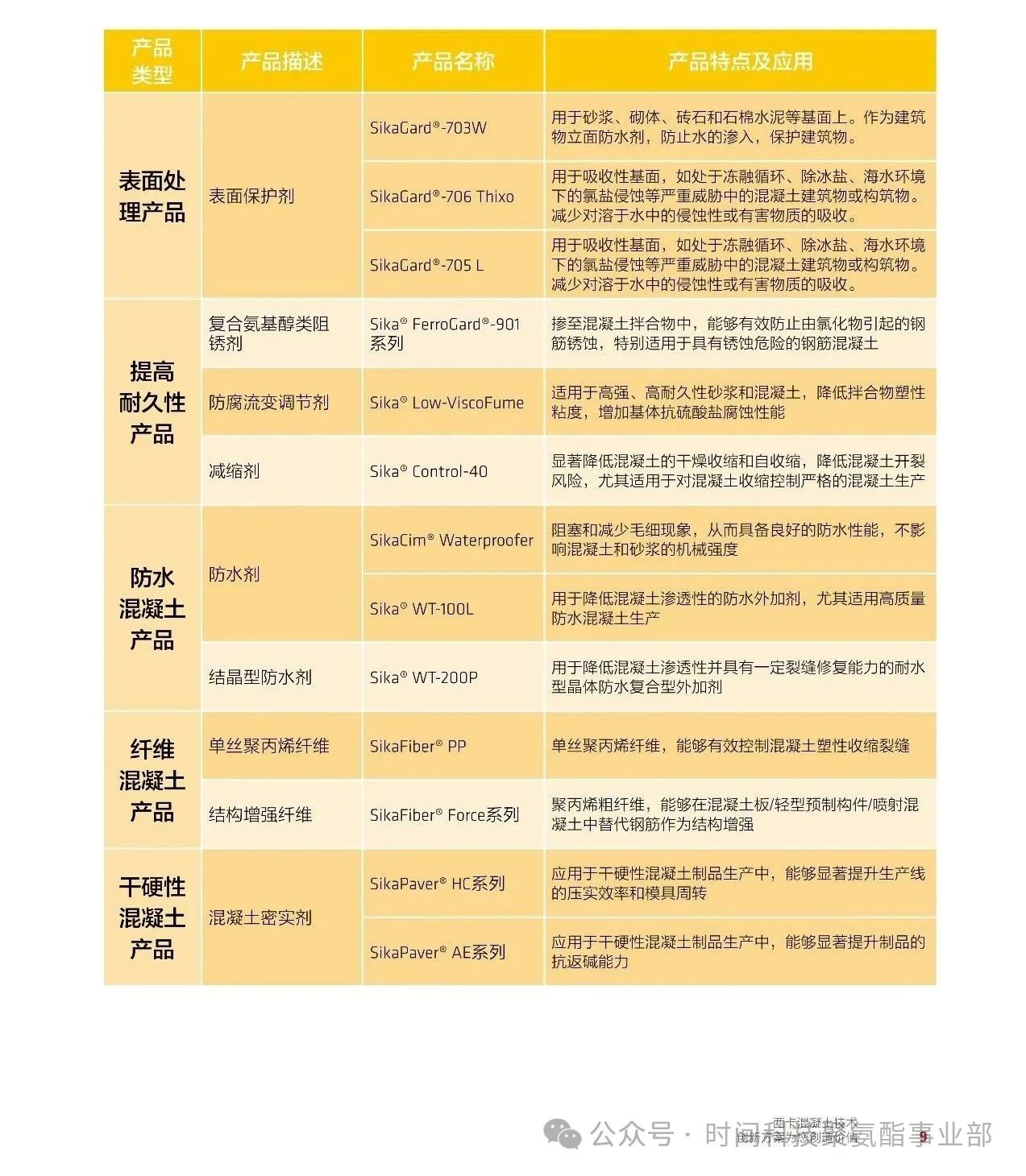 目前,西卡中国混凝土目标市场产品线品种丰富,为客户提供优质产品的同时还提供整体解决方案,致力于提高混凝土,水泥,砂浆,石膏等产品的质量,降低生产综合成本,缩短施工时间,避免不必要的材料浪费,实现高效生产,绿色生产。