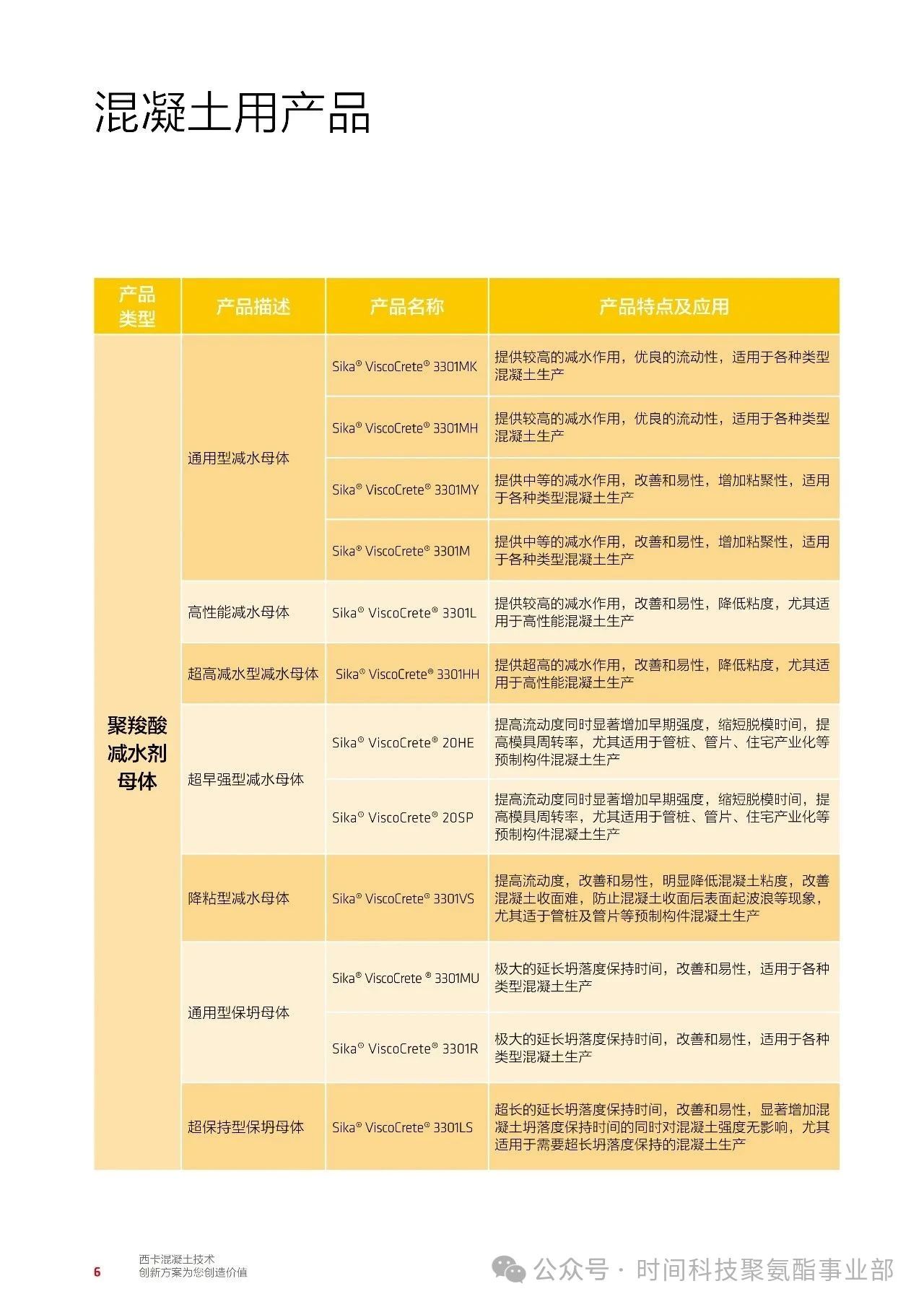 提供超高的减水作用,改善和易性,降低粘度,尤其适用于高性能混凝土生产 |