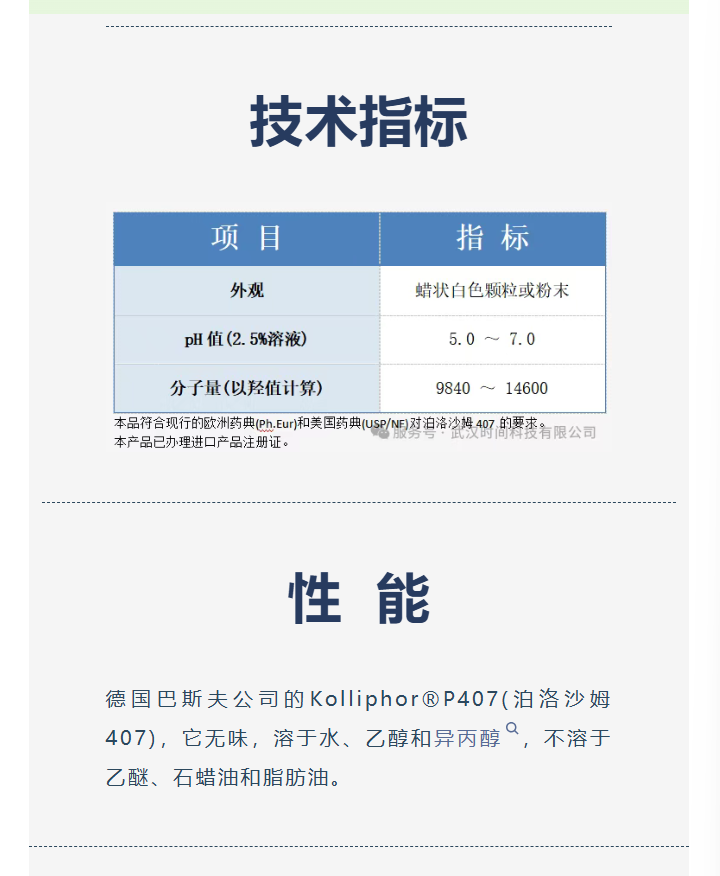 时间推荐 | Kolliphor®P407 泊洛沙姆407