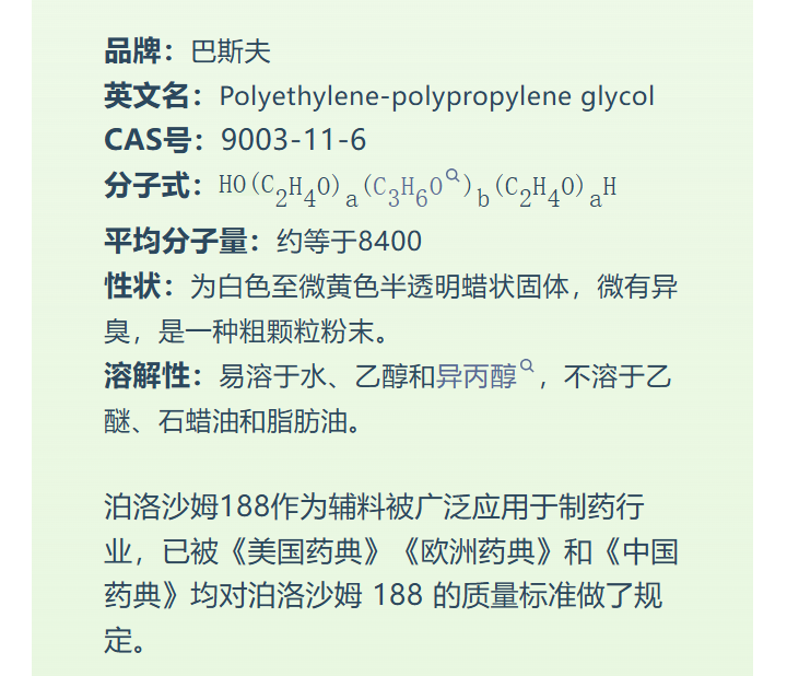 时间推荐 | Kolliphor®P188 泊洛沙姆188