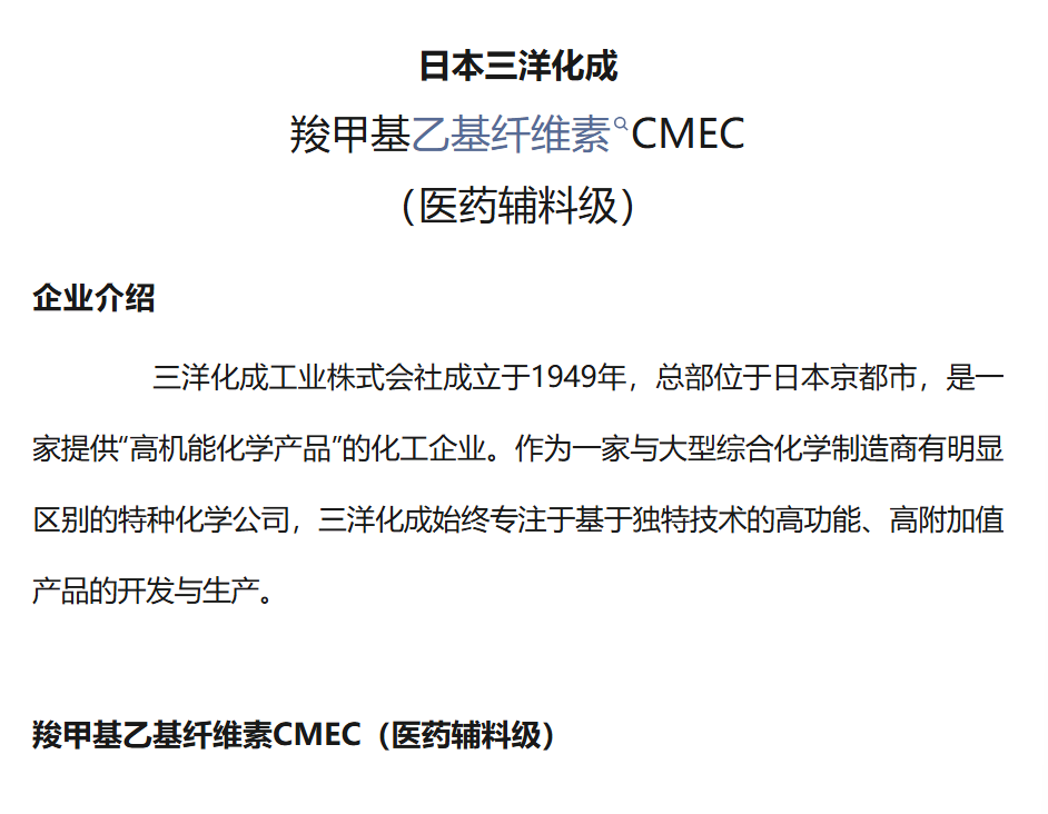 时间推荐 I 日本三洋化成 羧甲基乙基纤维素CMEC(医药辅料级)