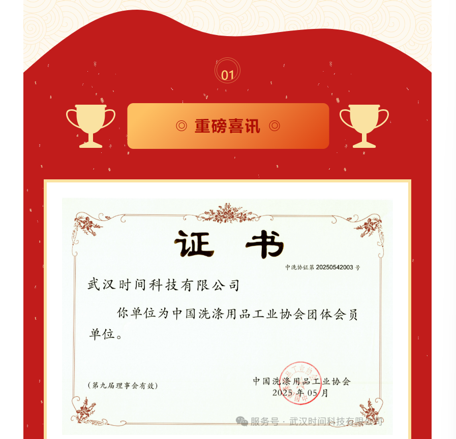 时间喜报 | 热烈祝贺武汉时间科技有限公司成为中国洗涤用品工业协会会员单位