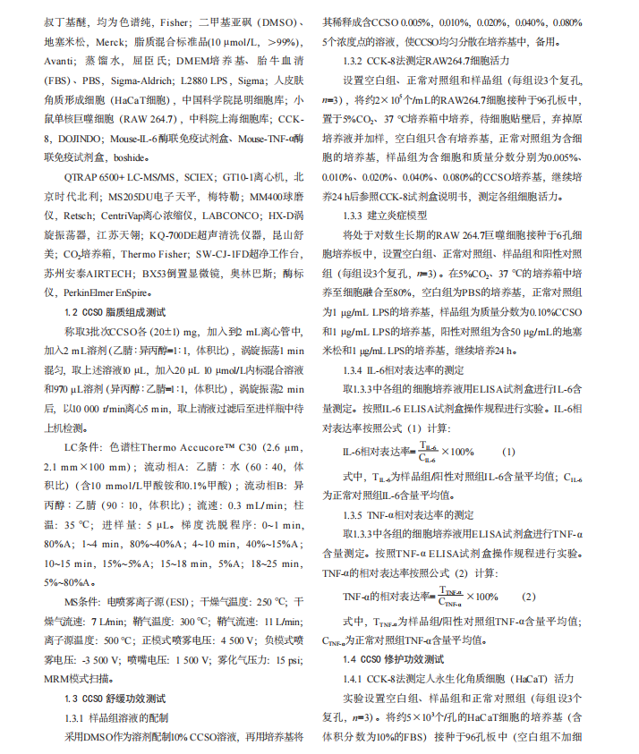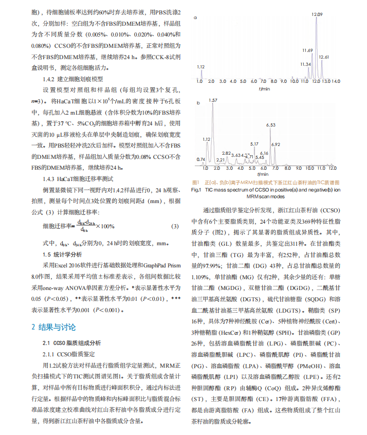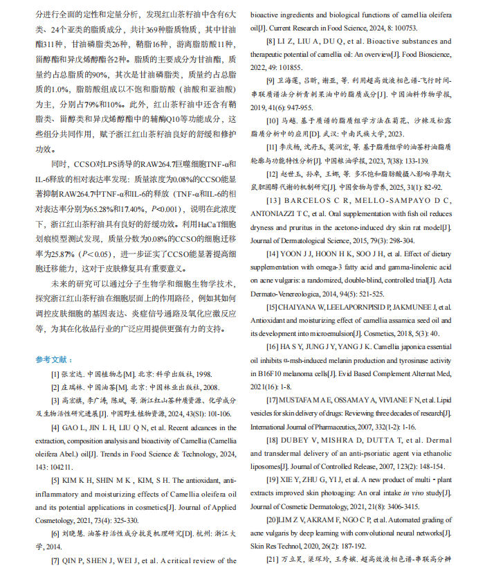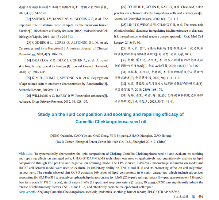 时间科普 | 浙江红山茶籽油脂质组成及舒缓修护功效研究